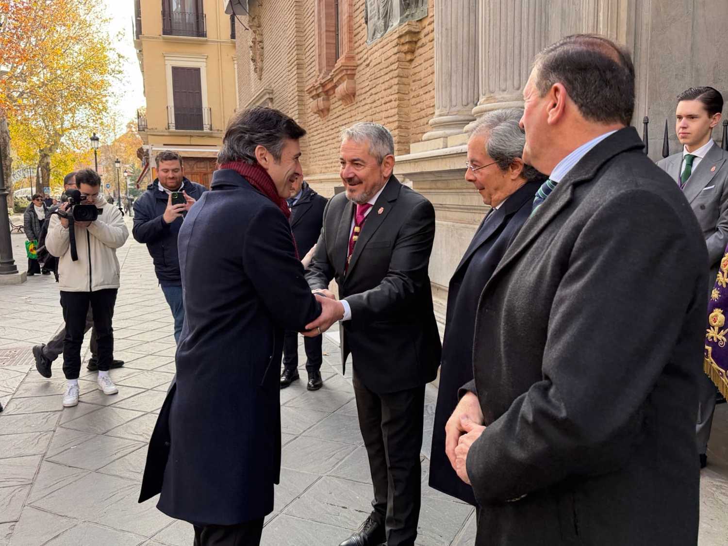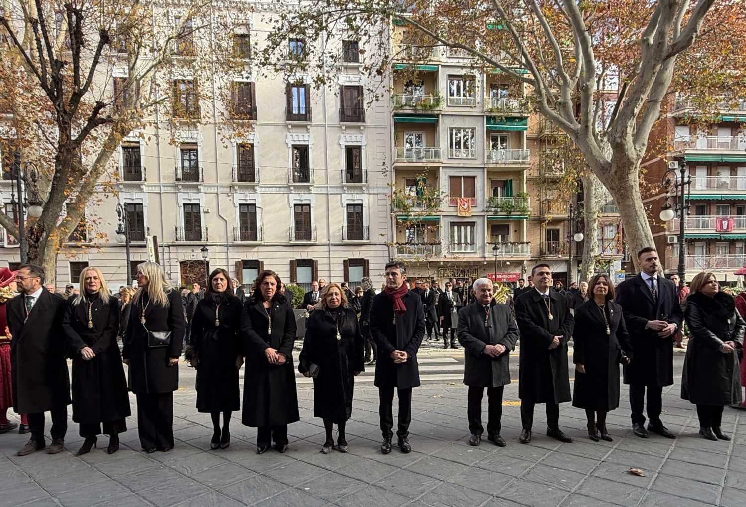 La Corporación Municipal de Granada, custodiada por cuatro maceros y dos policías locales, vestidos de gala, con su Primer Teniente de Alcalde, D. Jorge Saavedra Requena al frente, en representación de la Alcaldesa, Dña. Marifrán Carazo Villalonga, ha estado acompañado por miembros de la Corporación Municipal: Los corporativos que asistieron fueron los Tenientes de Alcalde Rosario Pallares y Vito Epíscopo y los concejales del grupo del Partido Popular Jorge Iglesias, Ana Sánchez, Encarnación González, Carolina Amate, Fernando Parra y Elisa campoy y por parte del Grupo Municipal del PSOE la portavoz Raquel Ruz, Nuria Gutiérrez y Juan José Ibáñez y la presencia del Intendente de la Policía Local Juan Martínez. La Corporación fue recibida en la puerta de la Basílica por el Vice Hermano Mayor de la Hermandad Sacramental de la Virgen de las Angustias, D. Adolfo Torres y miembros de la Junta de Gobierno, con el estandarte de la Hermandad.