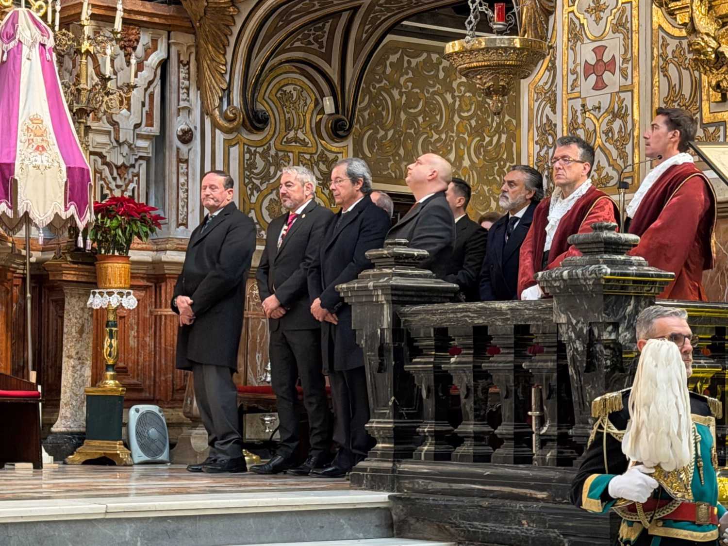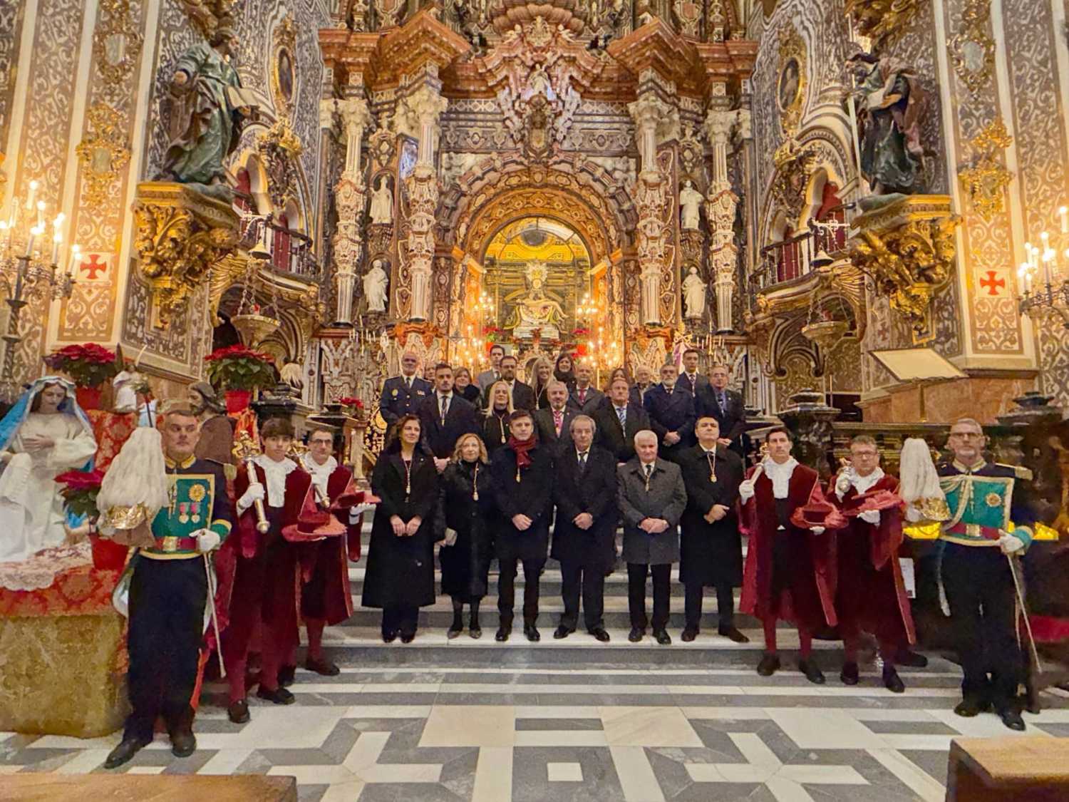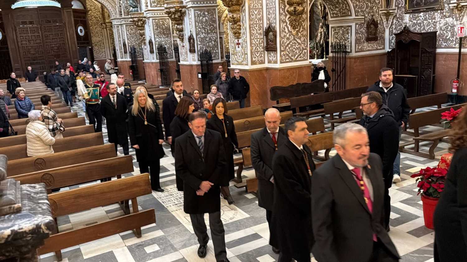 A continuación las autoridades, acompañadas por los miembros de la Hermandad, entraron por el pasillo central de la Basílica, ocupando la Corporación Municipal el lado derecho del altar mayor y los miembros de la Hermandad, el lado izquierdo.