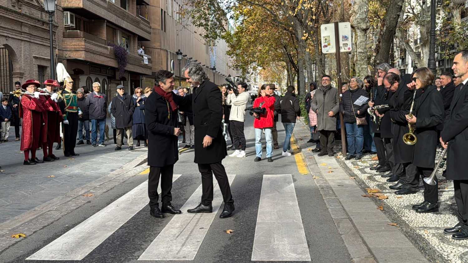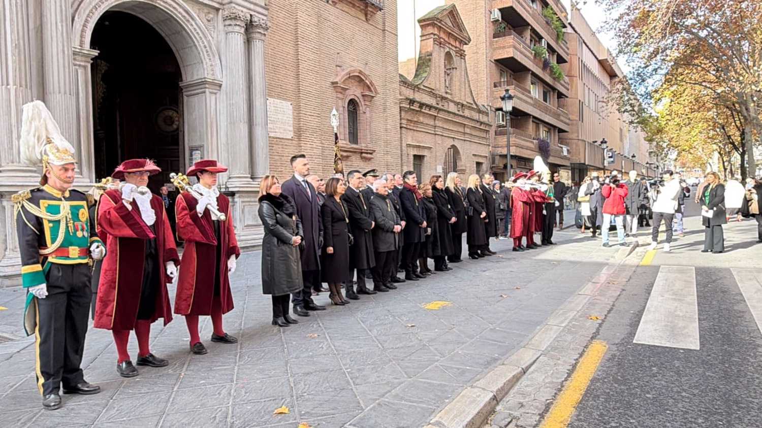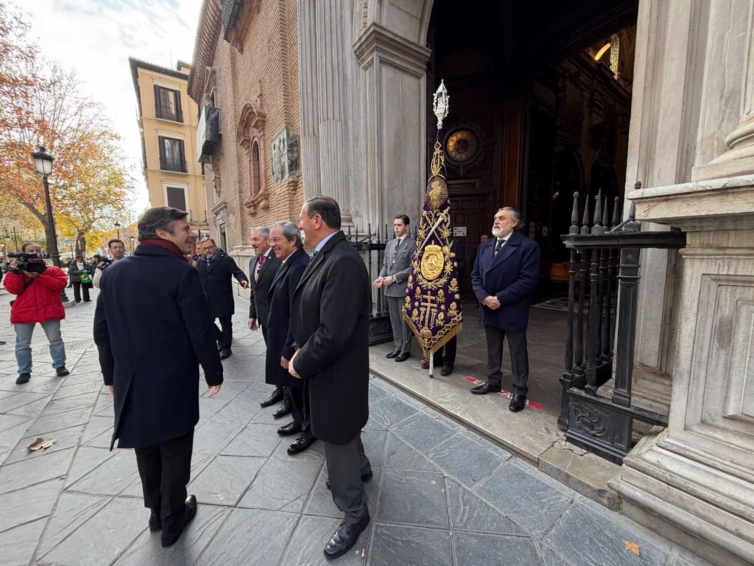 Frente a la portada de la Basílica estaba situada la Banda Municipal de Música de Granada, que interpretó, magistralmente los tres himnos oficiales: Andalucía, Granada y el Himno Nacional, que fueron seguidos con sumo respeto, silencio y emoción tanto por la Corporación Municipal, y Hermandad, como por las personas congregadas allí.