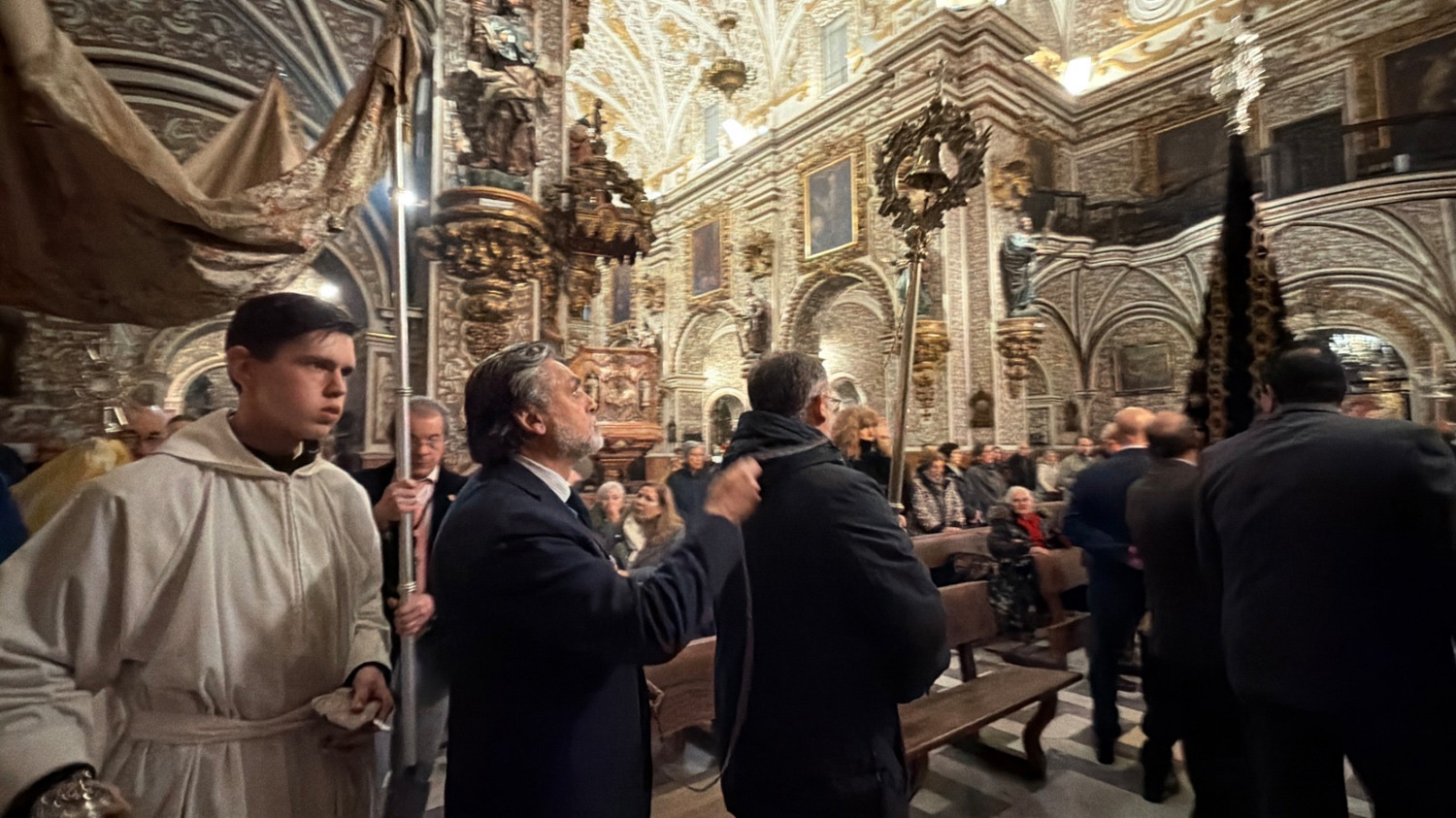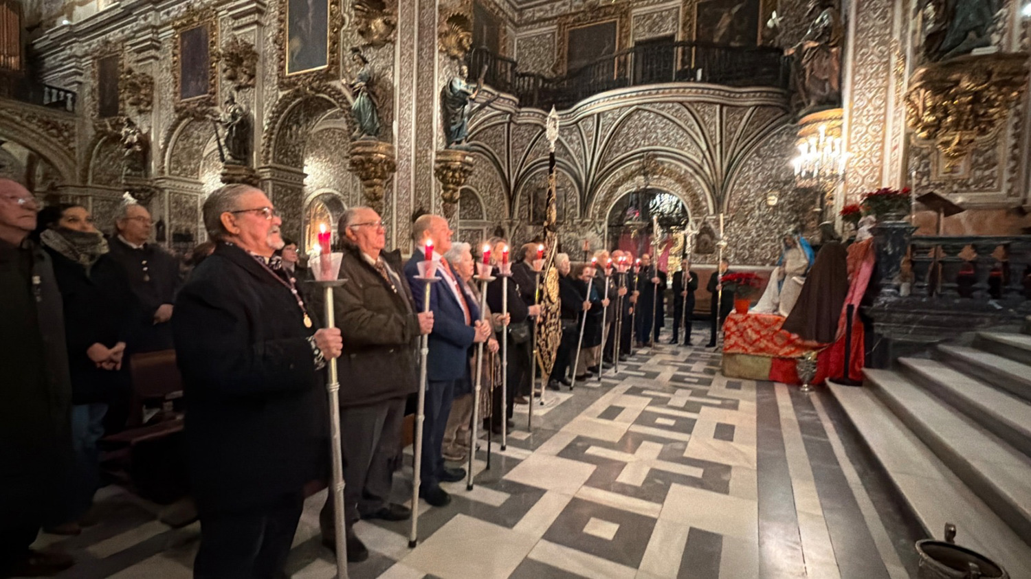 Hermano Mayor, D. Antonio González Martín, y numerosos hermanos de los tres cuerpos, colocados en los dos laterales del altar mayor, y en la nave central,