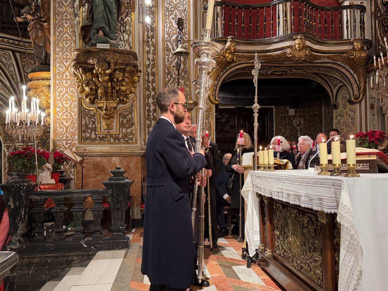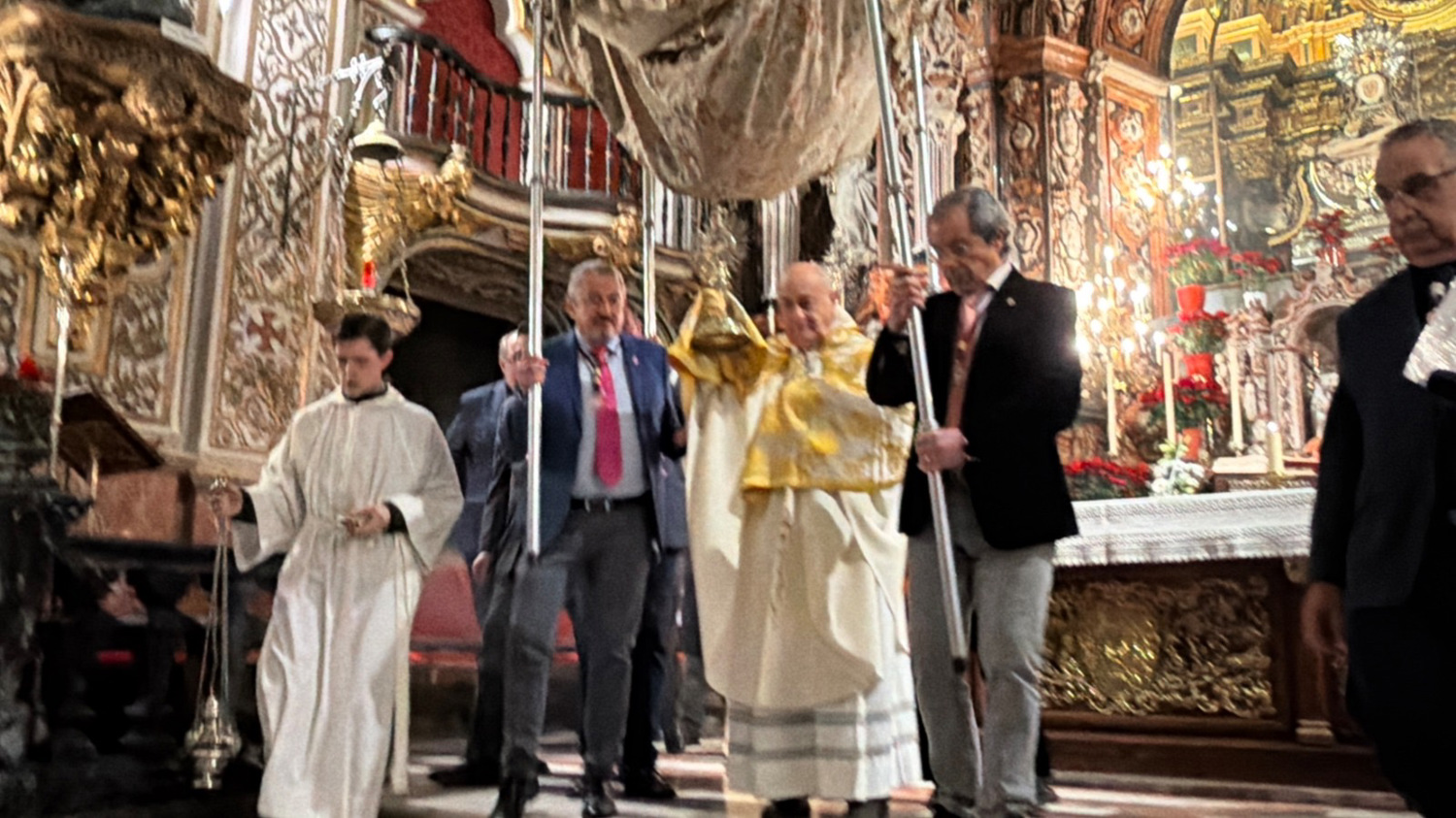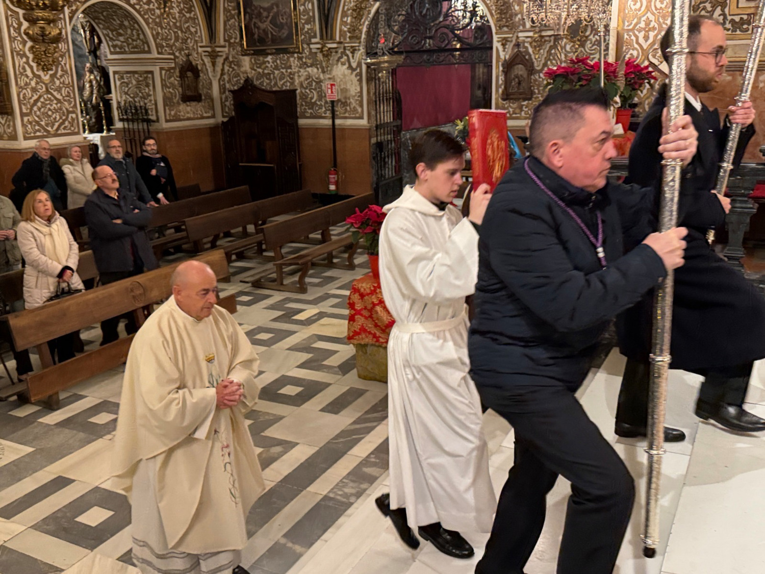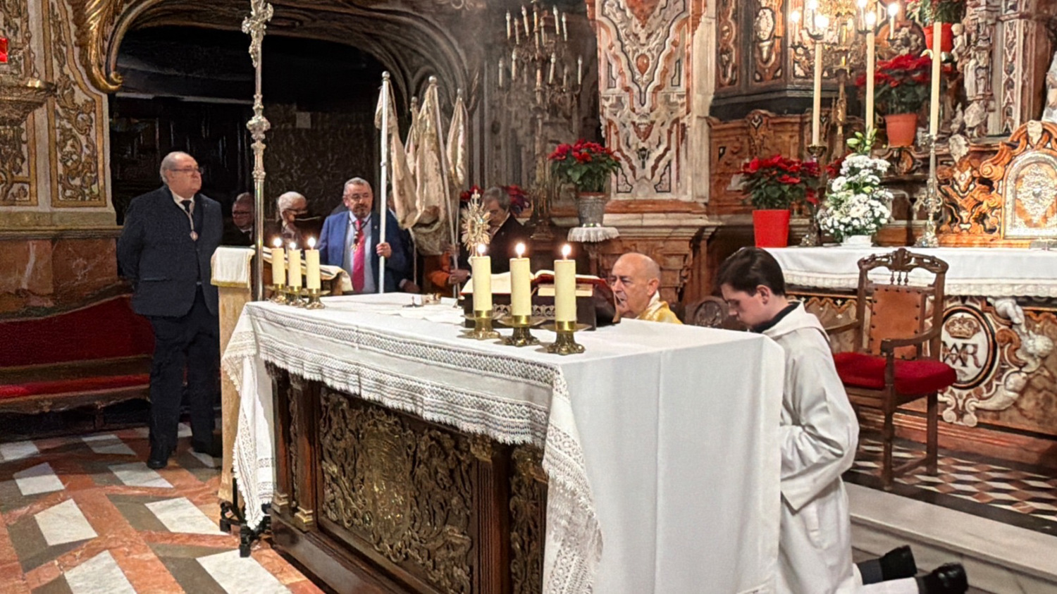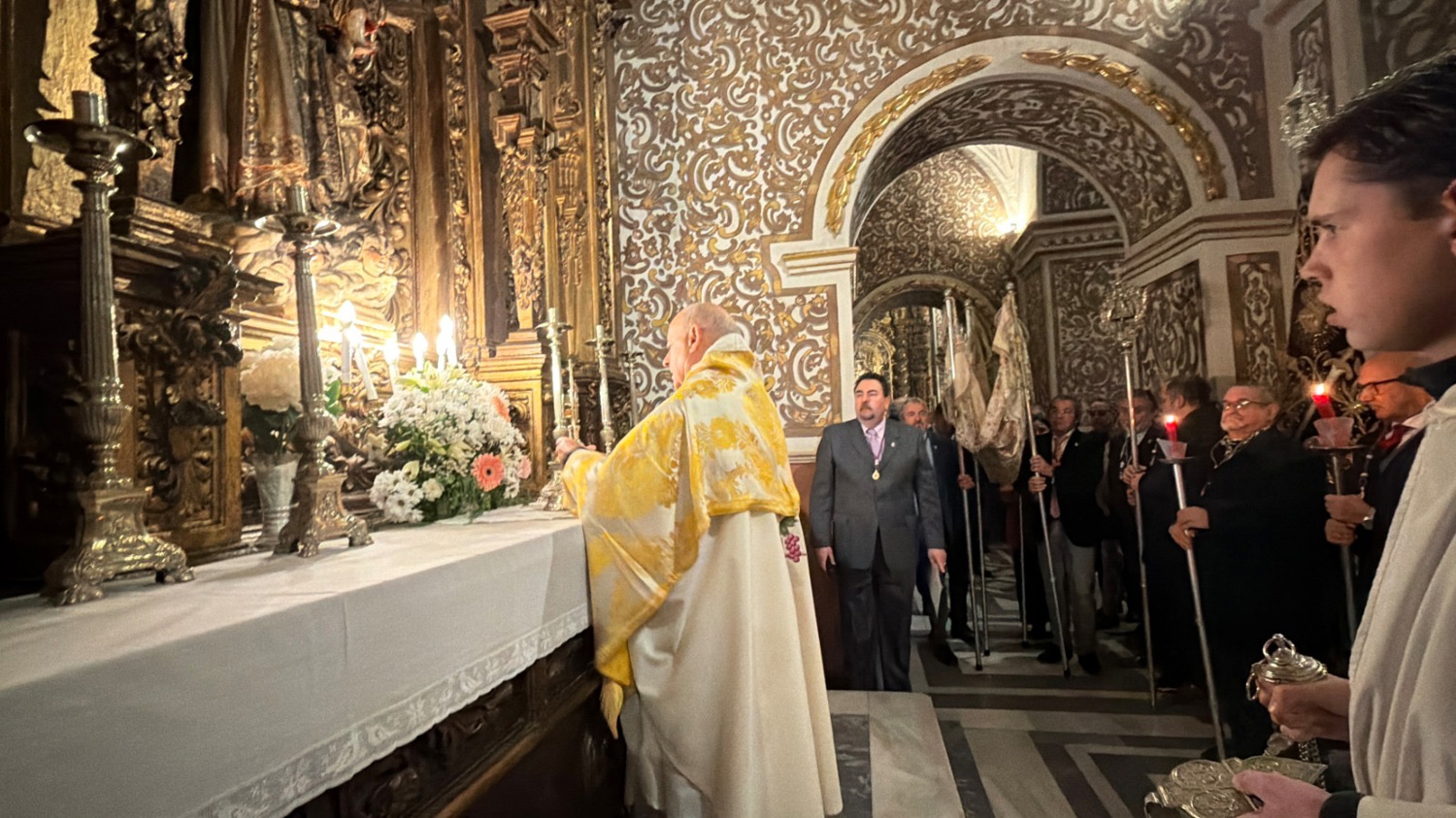 exposición y procesión del Santísimo por las capillas de la Basílica. La Junta de Gobierno de la Hermandad Sacramental de la Virgen de las Angustias, con su
