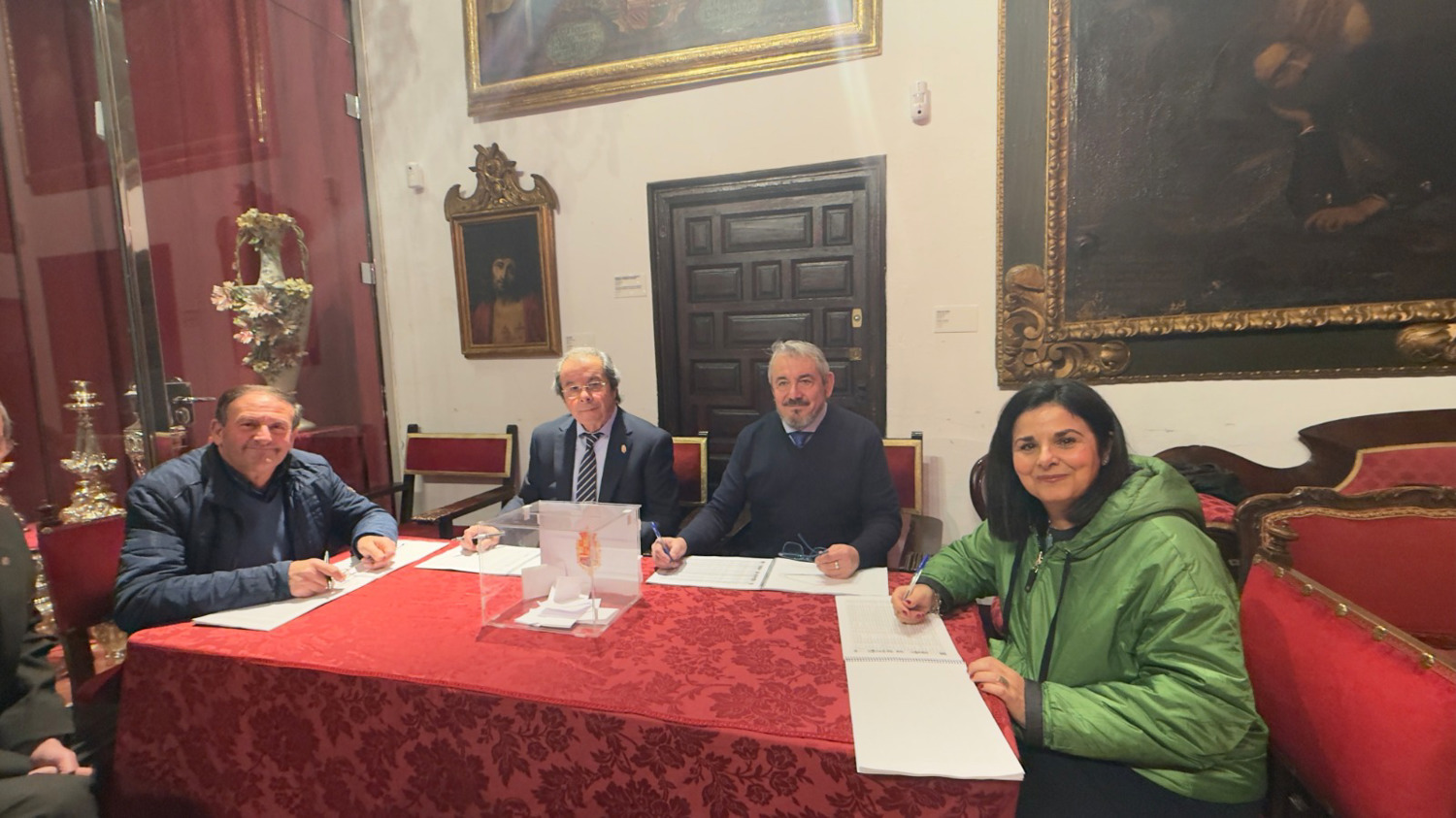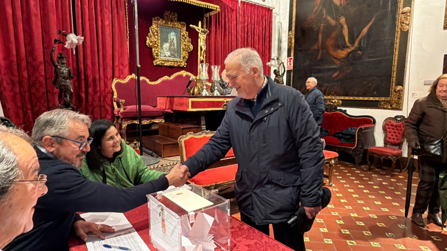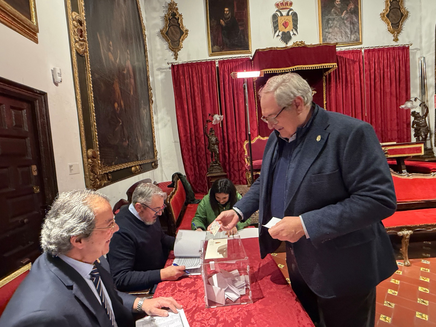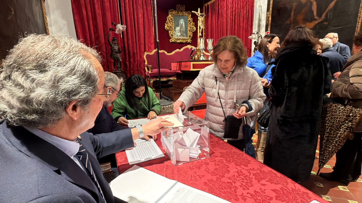 Desde la cinco, la asistencia de los Hermanos con derecho a voto, ha sido constante, sin registrarse ningún incidente, hasta las nueve y media. En una Sala aparte estaban las papeletas oficiales, que cada hermano iba recogiendo para depositarlas en la urna habilitada, previa identificación ante la Mesa Electoral. A las nueve y media se empezó el recuento de votos, una vez abierta la urna. El escrutinio ha sido público, estando la Sala Capitular repleta de hermanos y hermanas de la Hermandad, que lo han seguido con mucho interés, un gran silencio y respeto.